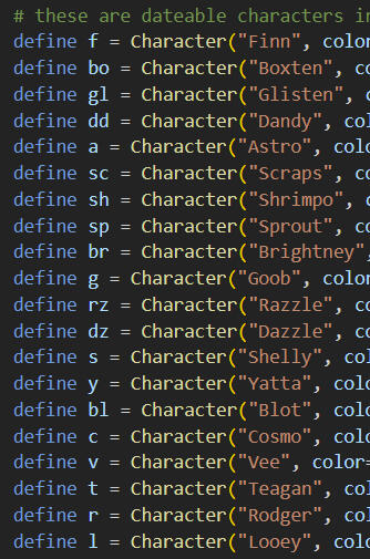 when i have a playable demo complete, it will be posted to my itch.io page. the demo will include the start of shrimpo, glisten, and finn's routes, as they're the most popular of the characters i write for usually. for now, enjoy these little progress clips of the sim, as well as some finished sprites and backgrounds.